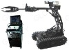 TECHNICAL PARAMETERS Power 12V35AH Li(two) Working Hours 2-3 hours under full-load Move Speed 0-20 meters / minute (Continuously Tunable) Walking Way Double Caterpillar, adapting complex terrain Weight(clamping jaw included) 230kg Folded Size 1600*650*1200(mm) Grabbing Height 2.5m with extension rod Grabbing Weight maximum 15kg under shortest arm of force Clamping Jaw Specifications holding jaw for gripping:480mm; holding fingers for grabbing:220mm Concentric Cable 100m Driving Mode Double Caterpillar Independently-driven Minimum Turn Radius 1m Video Quadruplet videos in total 1. Two low-illumination-intensity CCD color cameras are fixed in the front and back for the observation in the process of moving forwards and backwards. 2. One color mini camera fixed on the holding jaw is used for observing in the process of grabbing and placing the unidentified object. 3. One rotating camera with 28x optical zoom lens fixed on the top of the robot is used for all-direction observation. Picture Interface 15 inch color display screen, video connecting system of four frames switching Working Scope Wireless control within 100m (open surroundings), wire control within 100m Convey Method Video/data control adopt the wire and wireless compatible controller Move Functions Move forward/ backward/spot turn/ move up or down on the slop with 40 degree and the stair with 30 degree. Arm lock Functions Arm lock whirl, upper arm rise or fall, forearm rise or fall, arm lengthen or shorten, wrist whirl/ wrist swing, clamp action Extend Function Option Equipments: disruptor, shot gun, tear-gas emitter, sighting device
